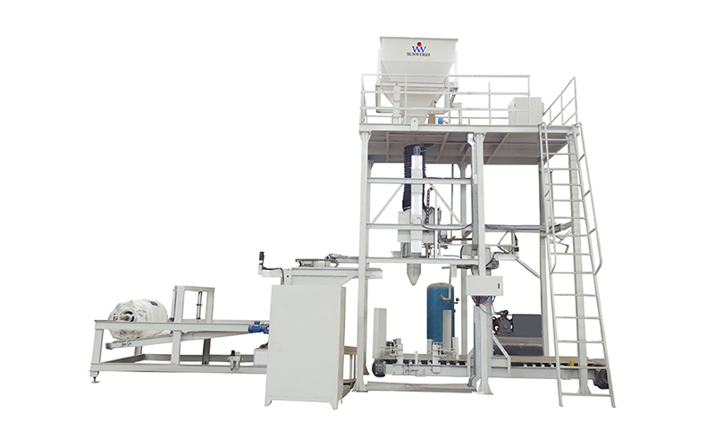空袋放置架、空袋供給輸送機(jī)、自動上袋裝置、上袋移動滑臺、稱重物料倉、給料裝置、給料裝置滑臺、袋口熱合封口裝置、噸包提升整理裝置、承重機(jī)架、檢修平臺、噸包物料輥道輸送機(jī)、除塵管及全套電氣控制系統(tǒng)、扶梯及欄桿等。